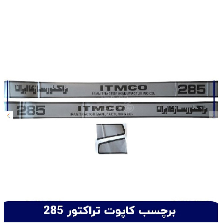برچسب و لیبل آرم بغل کاپوت تراکتور ITMCO 285 حاوی یک جفت چپ و راست می باشد.
