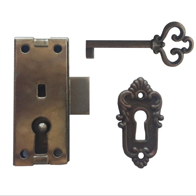 قفل کمد بوفه به همراه کلید و روکش آن می باشد.ساخت کشور ایران است.طول 55 میلی متر ، عرض 25 میلی متر با بسته 2 عددی می باشد.این قفل برای بوفه ، کمد ، درایور و ابزارهای چوبی دیگر و غیره بسیار مناسب می باشد.