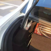 1️⃣ ابتدا صندوق عقب خودرو را کاملاً باز کنید و با یک وسیله مناسب (مانند یک تکیهگاه) آن را ثابت نگه دارید.