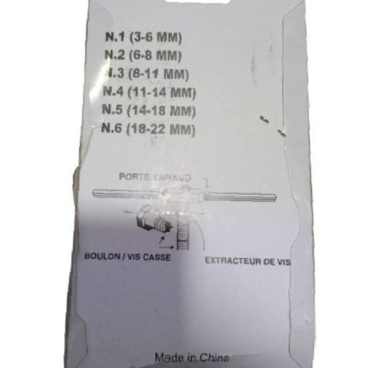 مناسب برای در آوردن پیچ شکسته ♦♦کاربری:فلز- پروفیل - استیل - آهن - آلومینیوم مناسب برای در آوردن پیچ شکسته قلاویز شماره 1 : 3 تا 6 میلی متر قلاویز شماره 2 : 6 تا 8 میلی متر قلاویز شماره 3 : 8 تا 11 میلی متر قلاویز شماره 4 : 11 تا 14 میلی متر قلاویز شماره 5 : 14 تا 18 میلی متر قلاویز شماره 6 : 18 تا 22 میلی متر