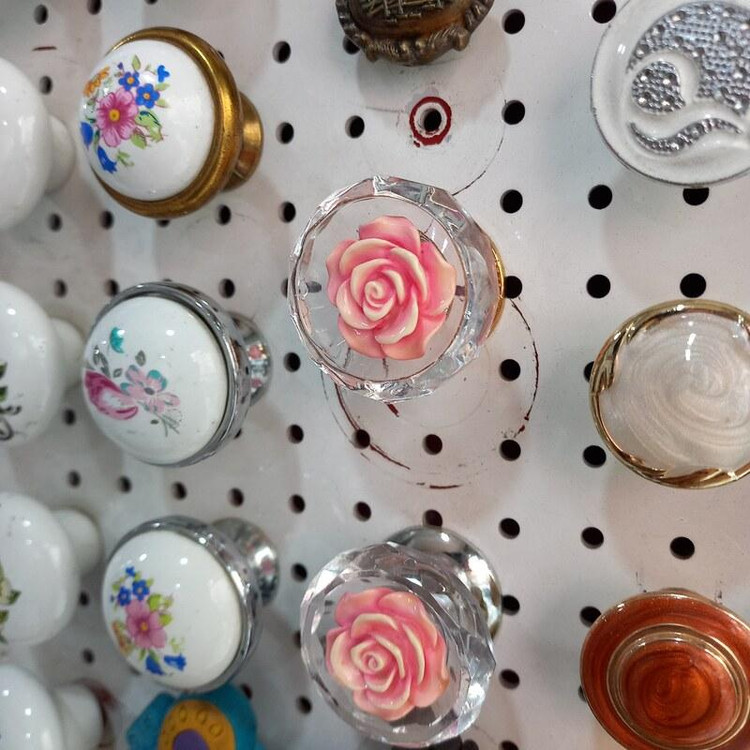 دستگیره کابینت و کمد گل دار صورتی بسته چهار عددی از جنس سرامیک مناسب آشپزخانه های لوکس